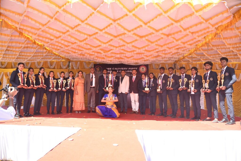 "Cauvery Cup"-2025 30 yard cricket tournament. Winner: Sree Cauvery First Grade College. Runners: Vidya Vikas College, Held on 13th and 14th March 2025.